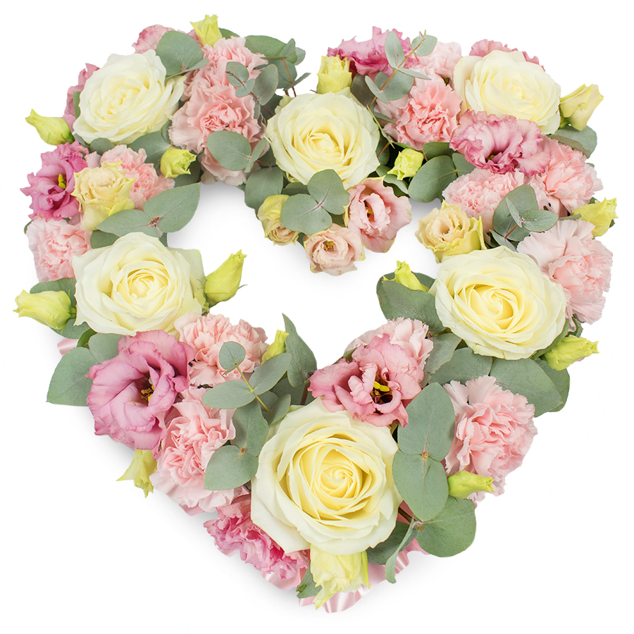 Our Luxurious Heartfelt Bouquet is the perfect expression of love and gratitude. Featuring pristine white roses, charming pink carnations, elegant pink lisianthus, and lush eucalyptus leaves, each flower is hand-selected for its exceptional quality and freshness.